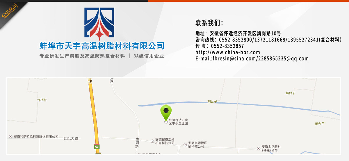 我公司成立于1990年,位于安徽省懷遠經濟開發區內,占地面積14000m2,是一家集研發、生產、銷售、服務為一體的高新技術企業,主營產品有:FB硼酚醛樹脂系列、高溫酚醛預浸料及高溫防熱復合材料系列等。 作為高新技術和軍民融合新技術企業,公司堅持科技興企的發展思路,擁有完善自主的產品研發體系,研發水平達到業界先進水平,獲多項發明專利。公司已通過“安徽省高新技術企業”認定,獲得“ISO9001質量管理體系認證“”ISO14001環境管理體系認證””GJB9001C武器裝備質量管理體系認證“”蚌埠市科技進步獎“和”懷遠縣科技進步獎“。主導產品“FB耐高溫阻燃熱固性酚醛樹脂”通過安徽省科技廳鑒定。 公司秉承“以科技創新為本”的經營理念,不斷吸收新技術,引進新設備,經過多年行業技術經驗的積累和沉淀,于2000年成功進行...企業榮譽展示